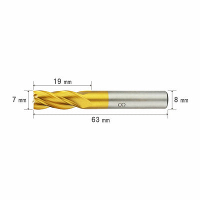 7mm Diameter, 63mm Overall Length, 4-Flute HSS Co End Mill, Cobalt High-Speed Steel