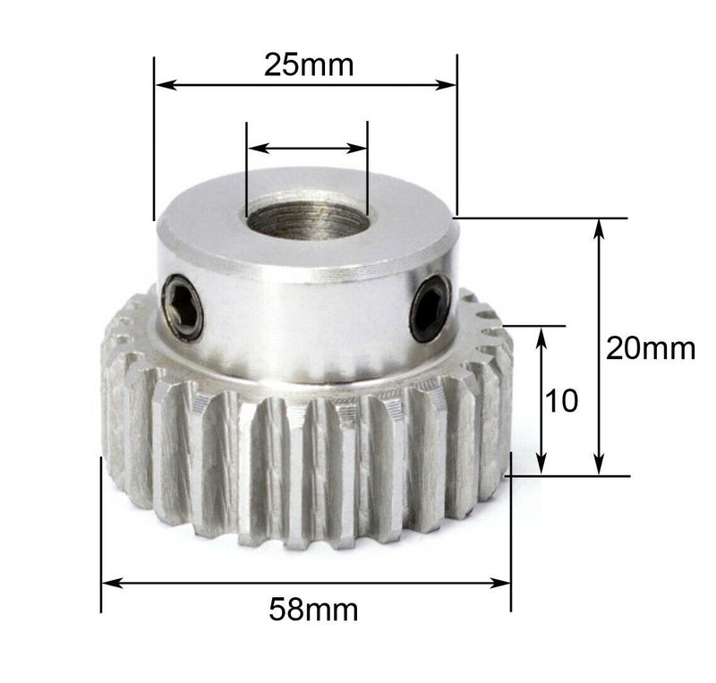 Module 1, 56 teeth, 58mm diameter, 12mm hole, 1045 steel spur gear