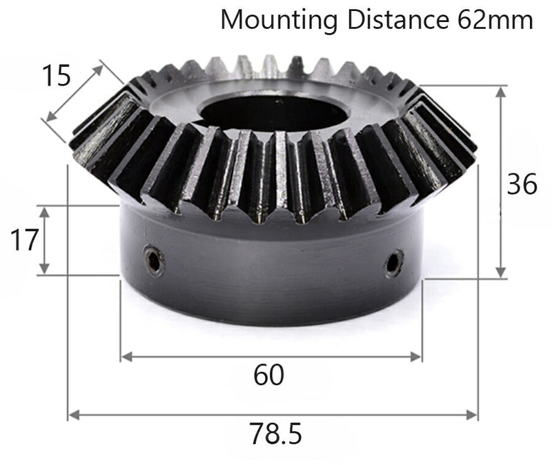 Module 2.5, Number of teeth 30, Hole diameter 22mm, Keyway 6mm, Speed ratio 1:1, Steel bevel gear