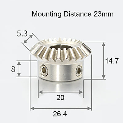This product is compatible with bevel gears with a module of 1, 25 teeth, and a speed ratio of 1:1.