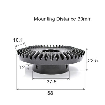 Module 1.5, Number of teeth 45, Hole diameter 16mm, Keyway 5mm, Speed ratio 1:3, Steel bevel gear