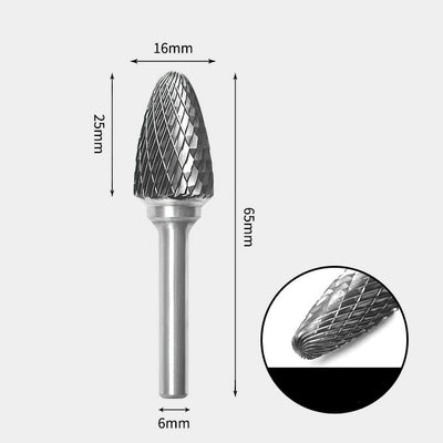 16 x 25mm Bullet-Shaped Double Cutting Tool with 6mm Shank, Solid Carbide Rotary Burr, Router Bit