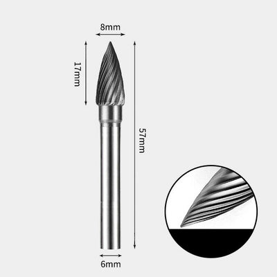 8 x 17mm Point Type Single Cut 6mm Shank Diameter Solid Carbide Rotary Burr Router Bit