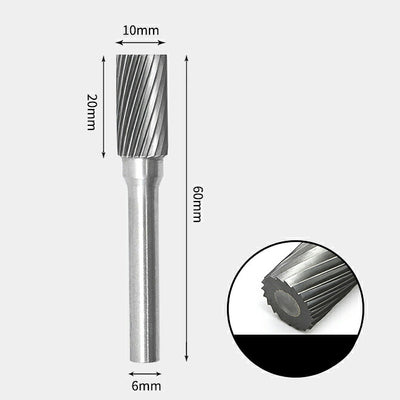 10 x 20mm 円筒型 シングルカット シャンク径 6mm 超硬 ロータリーバー リュータービット 超硬バー