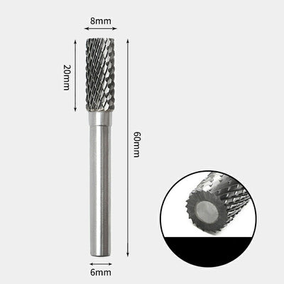 8 x 20mm 円筒型 ダブルカット シャンク径 6mm 超硬 ロータリーバー リュータービット 超硬バー