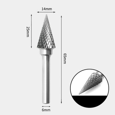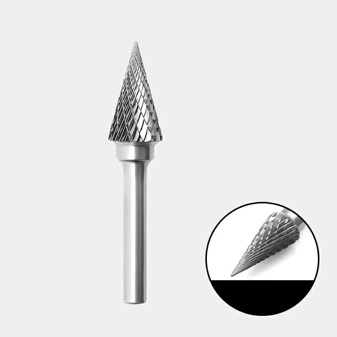 コーン型 ダブルカット シャンク径 6mm 超硬 ロータリーバー リュータービット 超硬バー